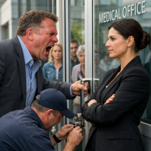 He came around to the front entrance with that same long, expensive stride I once mistook for confidence and now recognized as entitlement with posture. The locksmith, a broad-shouldered man named Eddie who had changed locks for three of my rental properties before and knew better than to involve himself emotionally, stood up and moved aside just enough for me to unlock the inner glass door while keeping the outer one sealed.