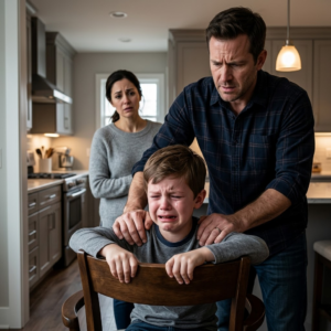 Evan’s small hands curled into fists against his thighs. He tried twice to speak and failed both times, his chest hitching with the effort of holding something too heavy for a child to carry.